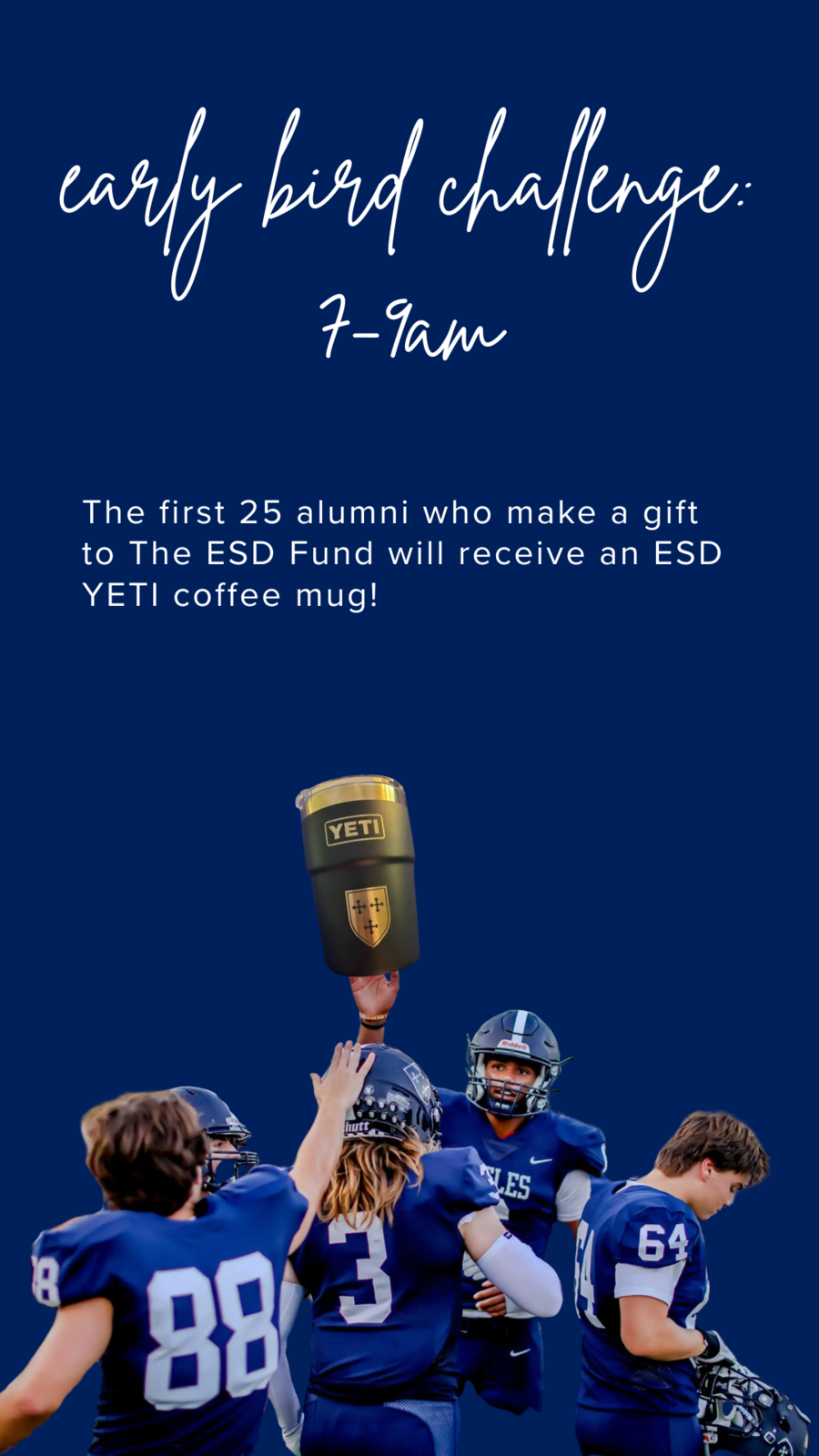 The first 25 alumni who make a gift to The ESD Fund between 8:00 a.m. - 10:00 a.m. will receive an ESD travel coffee mug.